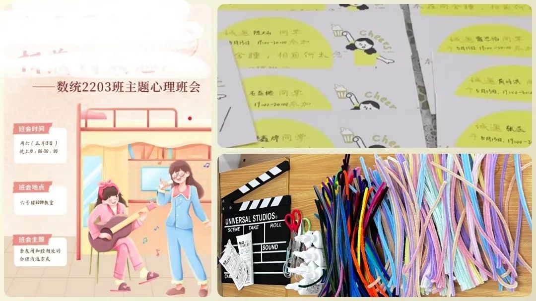 (通讯员:郭文瑾 李腾文桦)为加强班级的宿舍和谐,营造团结、互助、友爱的学习生活氛围,数学与统计学学院2203班于5月13日在六号楼6209举办“本在同舍睡,相煎何太急”——舍友间和睦相处的正确沟通方式主题心理班会,同时邀请班主任程婷老师一同参与、互动,促进师生交流与了解。
