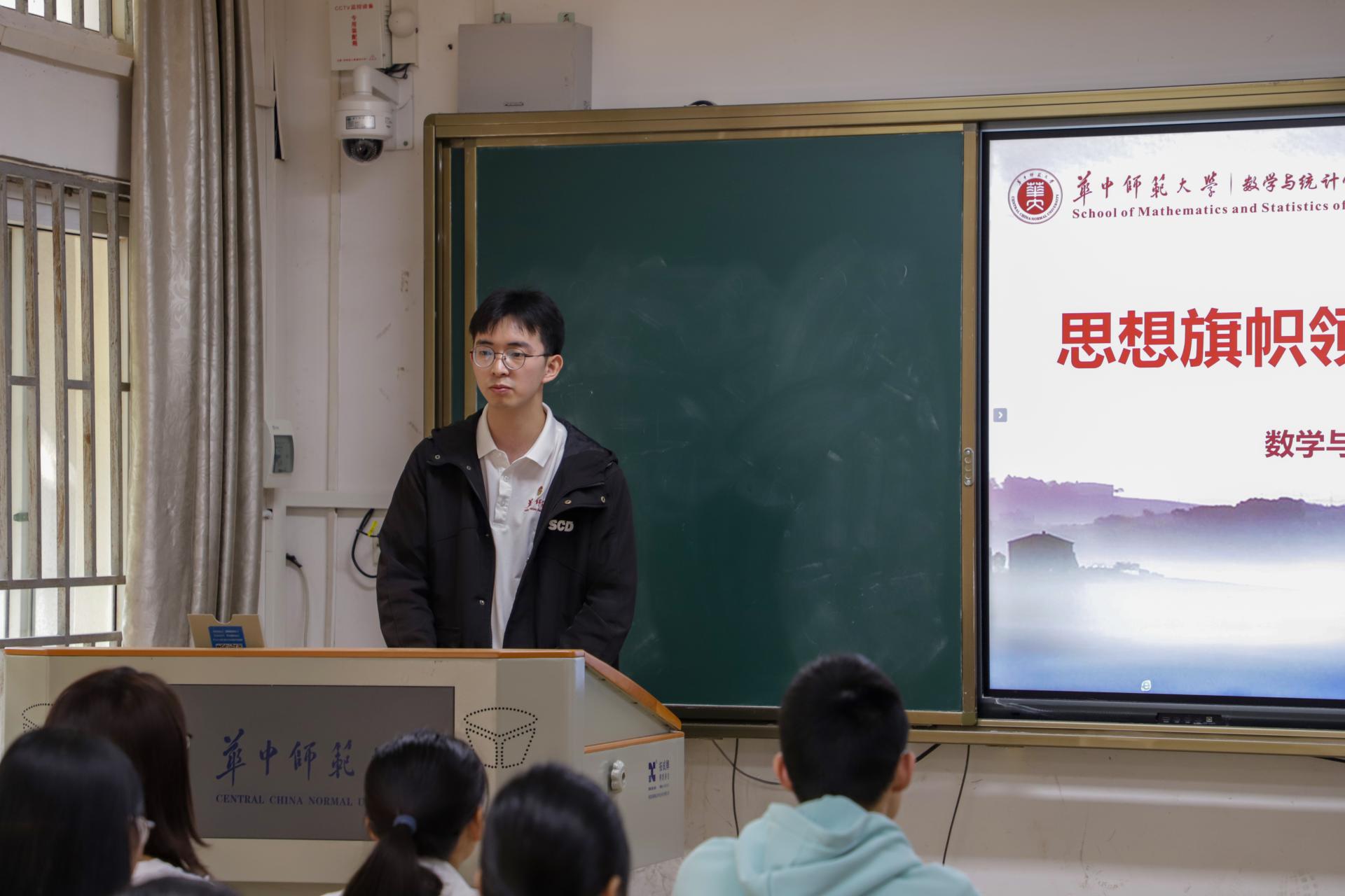 (通讯员 韩铭城)10月14日,数学与统计学学院(以下简称“数统学院”)2022级卓越人才班(2208班)团支部于6号楼6210开展“思想旗帜领航,砥砺奋进新征程”主题团日。校团委副书记胡一心,数统学院2022级辅导员申墁烨出席,2208班团支部全体同学参加本次活动。活动由2208班团支书向汉阳主持。