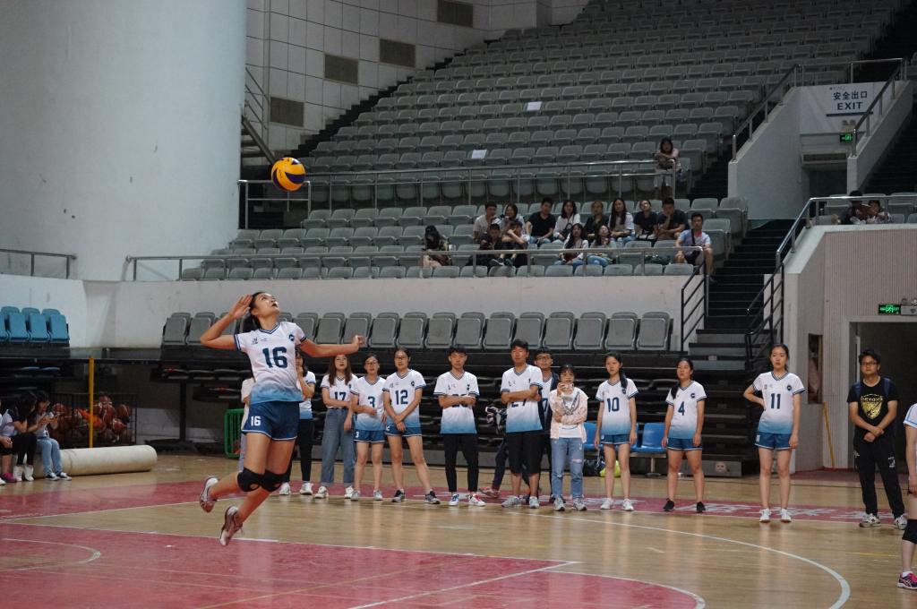 比赛进行到决胜局,双方队员的斗志都显得异常昂扬,两队选手都拿出了最好的竞技状态,做到每分必争。对于数统的猛烈攻势,生科选手频繁出现发球接连下网和传球不到位的失误,而数院选手借此机会多次扣杀,继续扩大优势。同时,16号队员陆思媛反应迅速,一记巧妙的救球和多次大力扣杀,更是将比赛推至高潮。数统副攻11号选手徐舒凡和13号选手周端妮的网前高度优势,直接奠定了数统学院的胜势。最终,数统学院以25:15拿下决胜局,荣获“生命杯”排球赛冠军。