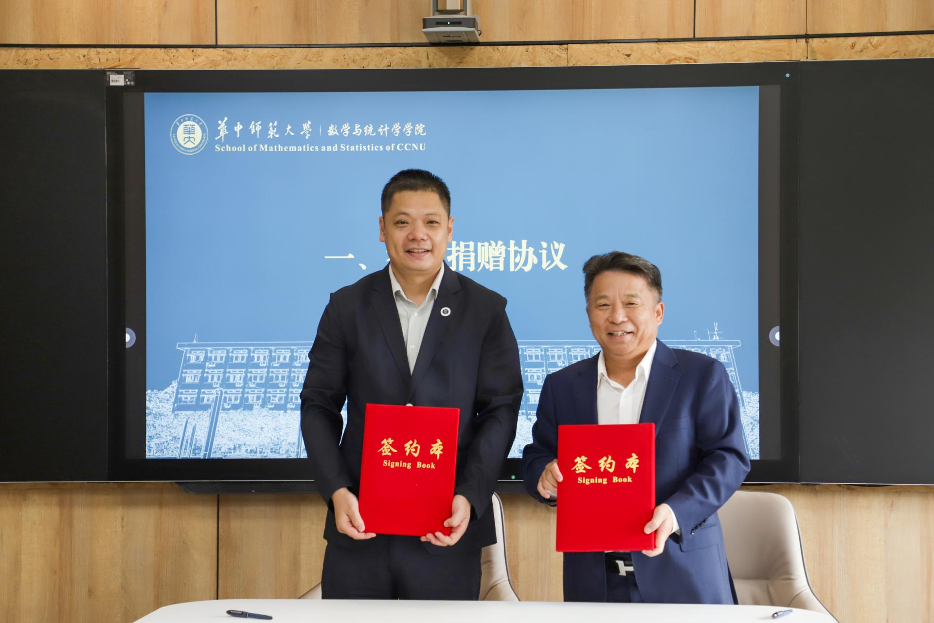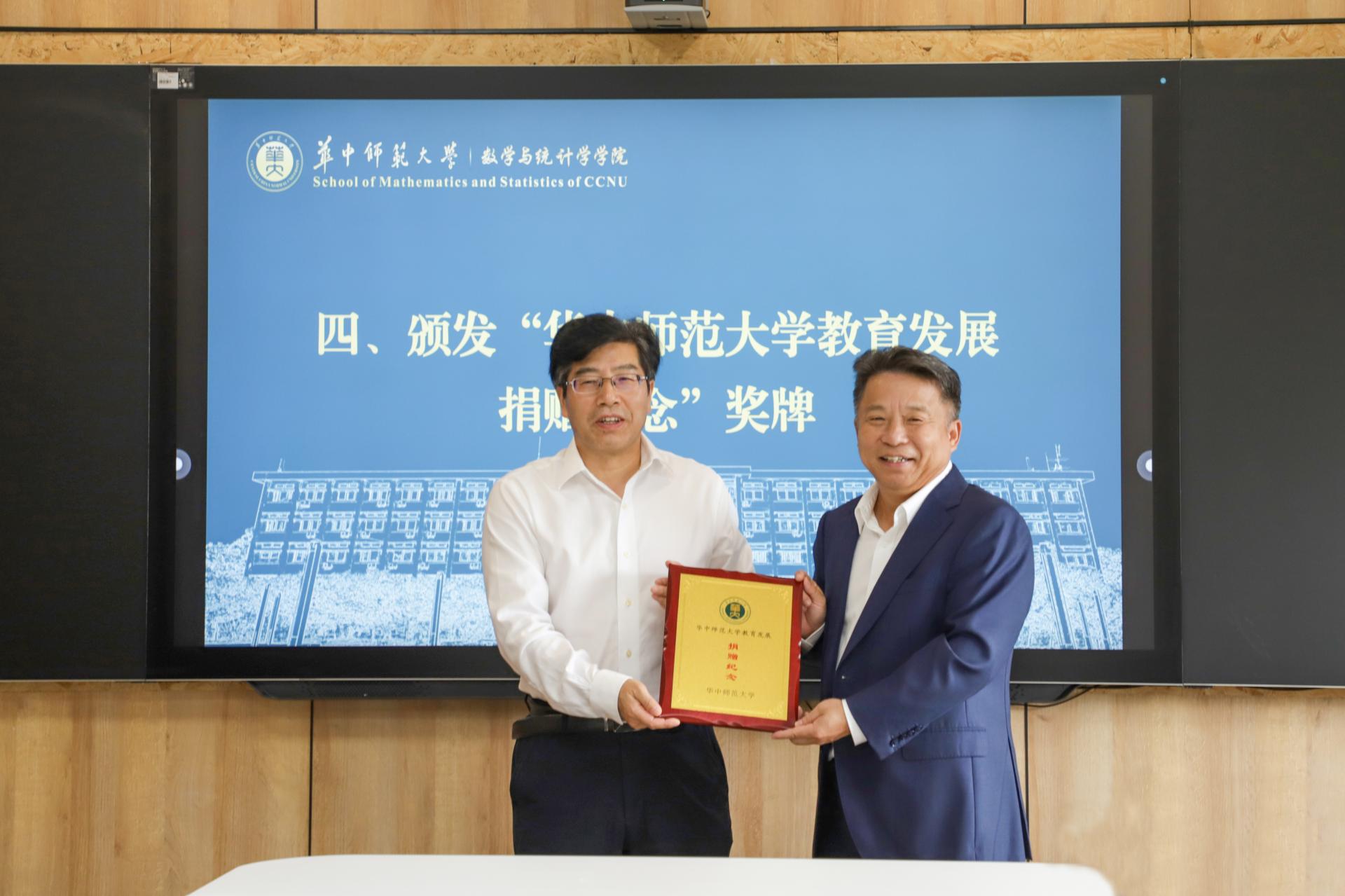 捐赠仪式上,数学系83级校友詹伟哉代表“德沃”奖学金捐资校友向学院捐赠10万元,用于支持学院人才培养。华中师范大学教育发展基金会秘书长郭庆与詹伟哉签署捐赠协议并向詹伟哉赠送学校纪念品,数统学院副院长左国新接收捐赠支票,彭双阶代表学校为詹伟哉颁发捐赠证书、捐赠奖牌。数统学院党委书记刘成竹为詹伟哉赠送学院纪念品《桂子记忆》。