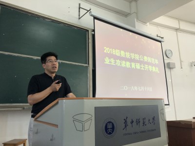 7月16日上午9时,数学与统计学学院在9401教室举行了2018级数统学院公费师范毕业生攻读教育硕士开学典礼。出席本次活动的领导有:院党委书记王中,院长彭双阶,副院长刘宏伟和梅全雄老师,开学典礼由2018级免师读研硕士班班主任李慧老师主持。