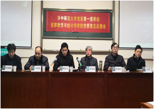 根据学校党委关于巡察工作的统一部署,2018年12月14日下午,华中师范大学党委第一巡察组巡察数学与统计学学院党委工作动员会召开。12月14日至12月28日,校党委第一巡察组对数院党委进行了为期15天的巡察,我院领导班子及广大师生对巡察工作给予了积极支持和配合。2019年1月17日,校党委第一巡察组向我院党委反馈了巡察情况。