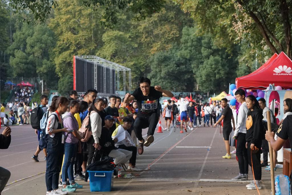 引体向上比赛中,每个选手都咬紧牙关,挑战极限。几名参赛运动员因有其他项目时间冲突,延后了上场顺序。即便在这种体力过度消耗的情况下,他们也依然稳定发挥,最终数院选手的引体向上数量遥遥领先,夺得了本项比赛的第一名。混合跳绳接力比赛中,倒数第四组选手中途节奏不一致,导致短暂的停歇,轮到最后一组选手时,物院与计院的选手已赶超。数统的强者们并没有放弃,他们协调一致,最终完成再反超,取得第一。