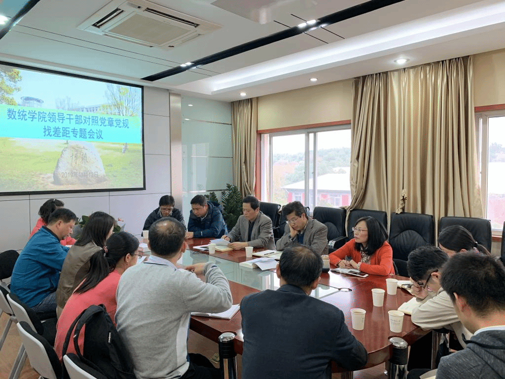 根据主题教育工作方案,数统学院领导干部在深入学习习近平总书记关于“不忘初心、牢记使命”重要论述的基础上,结合学习研讨,对照党章党规,重点对照党章、《关于新形势下党内政治生活的若干准则》《中国共产党纪律处分条例》,进行检视整改。学院领导班子认真对照党章党规,积极查找个人在政治修养、理论学习、服务群众、遵守纪律、作用发挥等方面的差距和不足,深入剖析原因,并针对问题提出今后在理论学习和实际工作中的改进措施和努力方向。他们纷纷表示,今后将继续加强理论武装,深入系统联系实际地学原文学原理,不断增强服务意识,改进工作作风,坚持党的教育方针,落实立德树人根本任务。