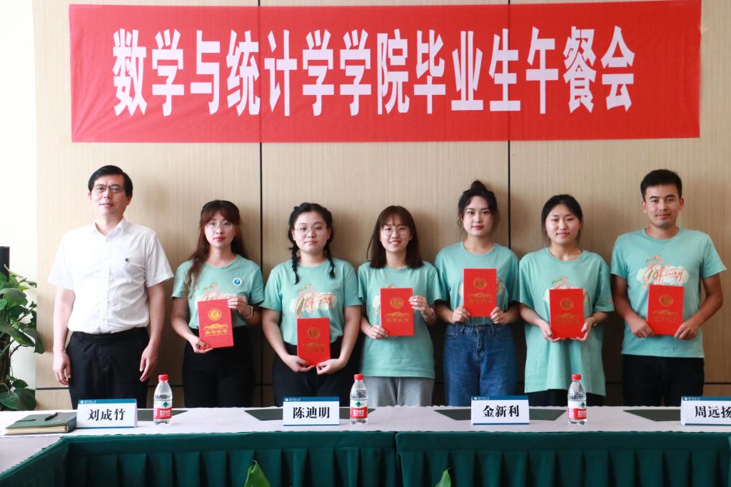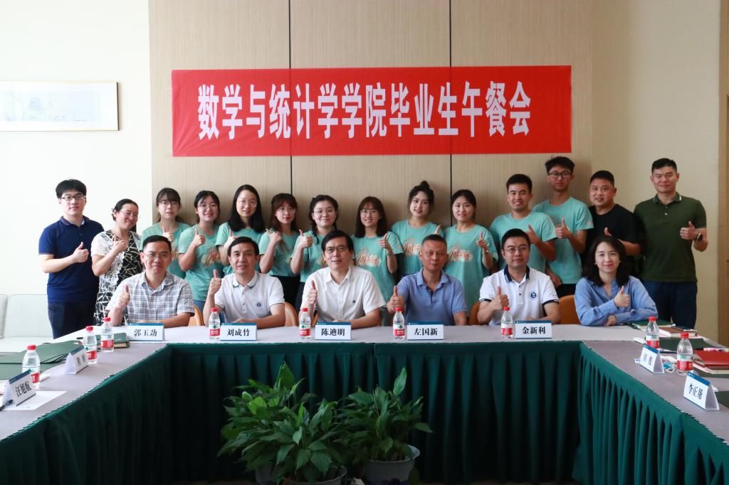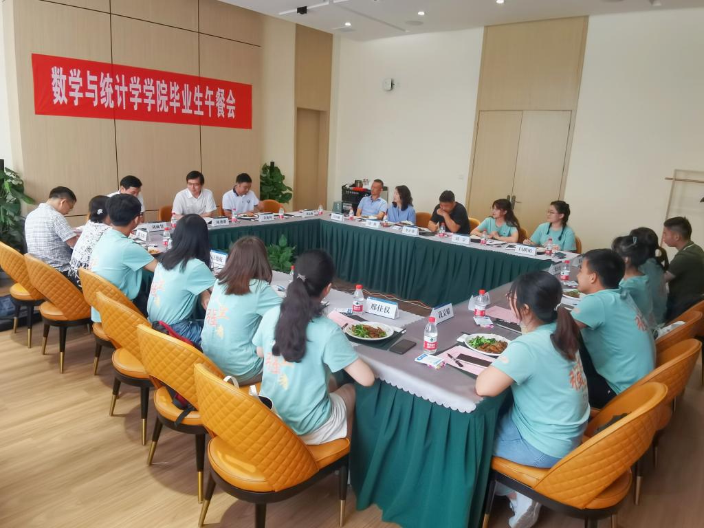 6月9日中午,数学与统计学学院毕业生午餐会在桂香园三楼桂花厅举行,校党委副书记陈迪明、党委学生工作部副处长金新利,学院党委书记刘成竹、副书记田俊,副院长左国新、郭玉劲,2018级班主任代表程婷、李正帮,辅导员谢定一以及毕业生代表参加本次午餐会。午餐会由田俊主持。