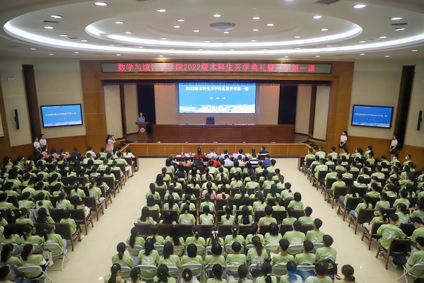 (通讯员 滑怡冰 董嘉怡)9月23日晚,数学与统计学学院(以下简称“数统学院”)2022级本科生开学典礼暨开学第一课在科学会堂举行。华中师范大学副校长彭双阶,院党委书记刘成竹,院长周远扬、副院长郑高峰,院党委副书记田俊,2022级班主任代表范琼、蒋咪娜、程婷、邓国泰、陈双、罗勇、丁来浩、阴小波、李俊锋、李佩彦以及各年级辅导员出席了本次活动。本次开学典礼由田俊主持。