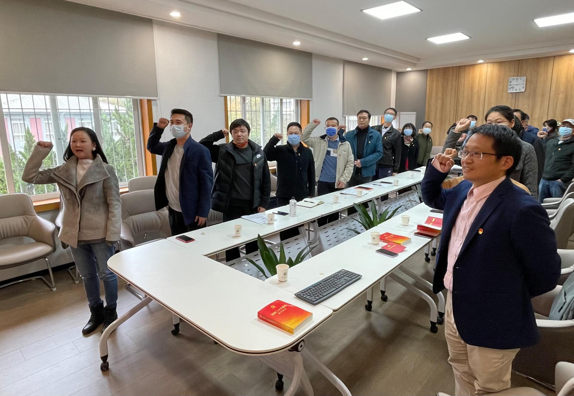 活动伊始,科技处党支部王珏带领与会全体党员重温入党誓词。