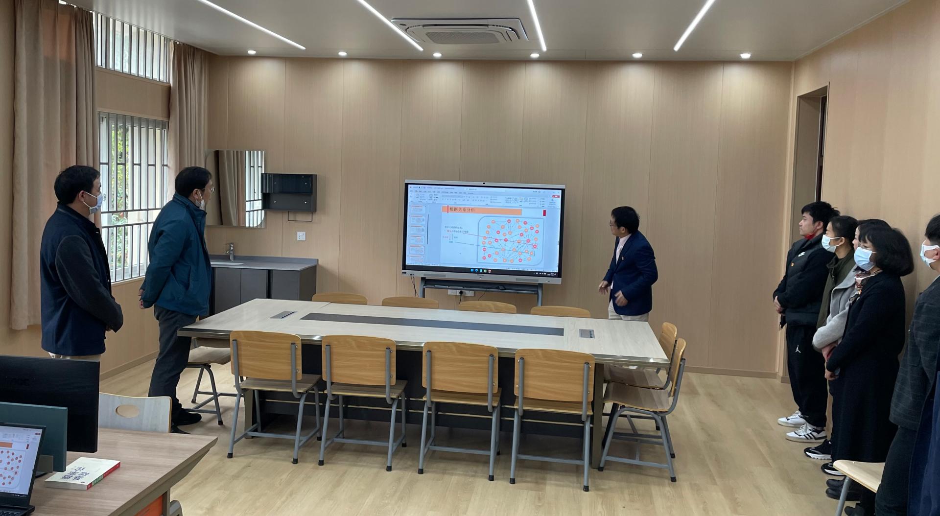 活动开始前,数统学院党委委员、统计学系主任李波教授带领科技处党支部与会全体党员赴六号楼205参观社会演化与公共安全实验室。