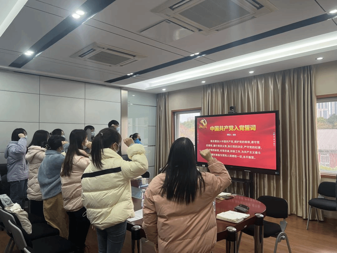 全体与会党员在2021级研究生第二党支部金迪同志的带领下,重温了入党誓词。