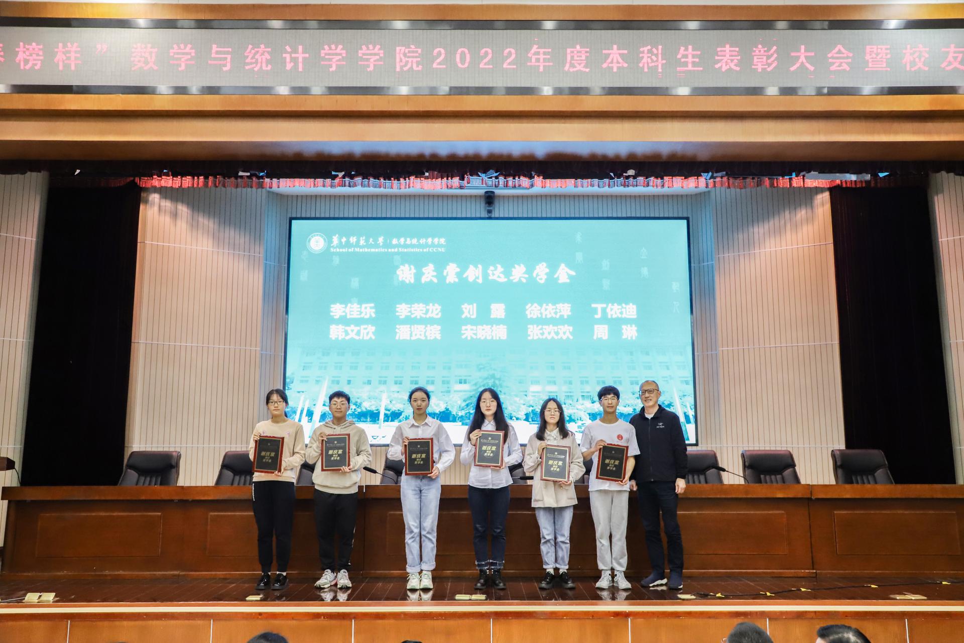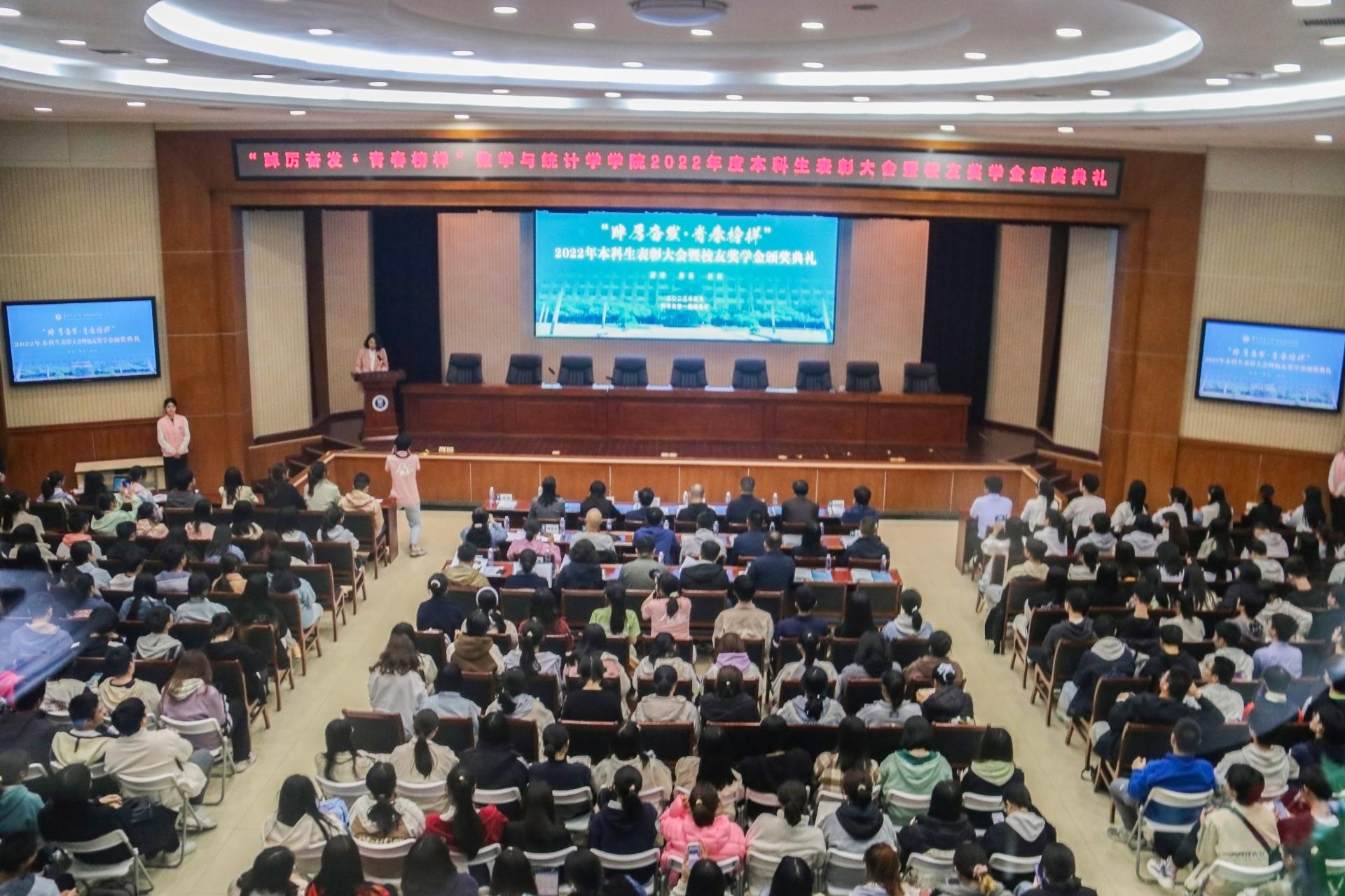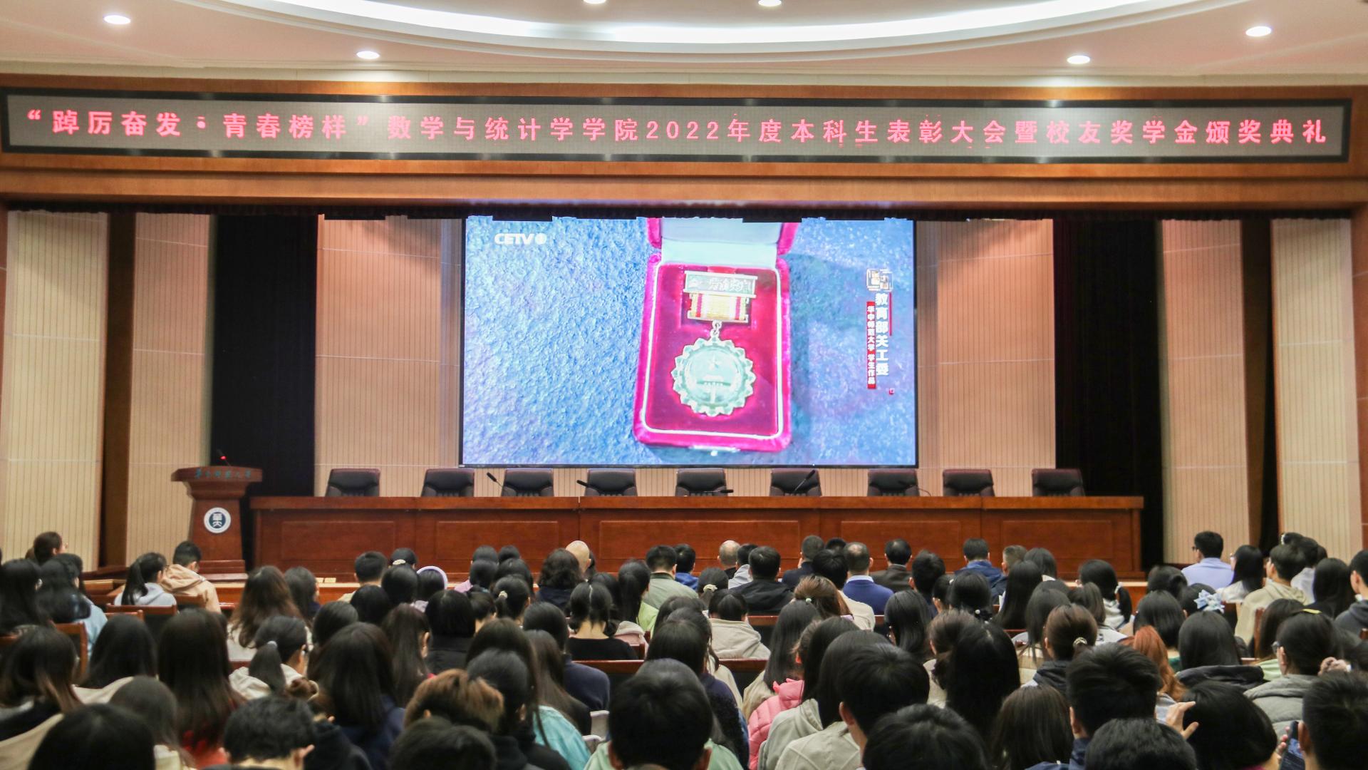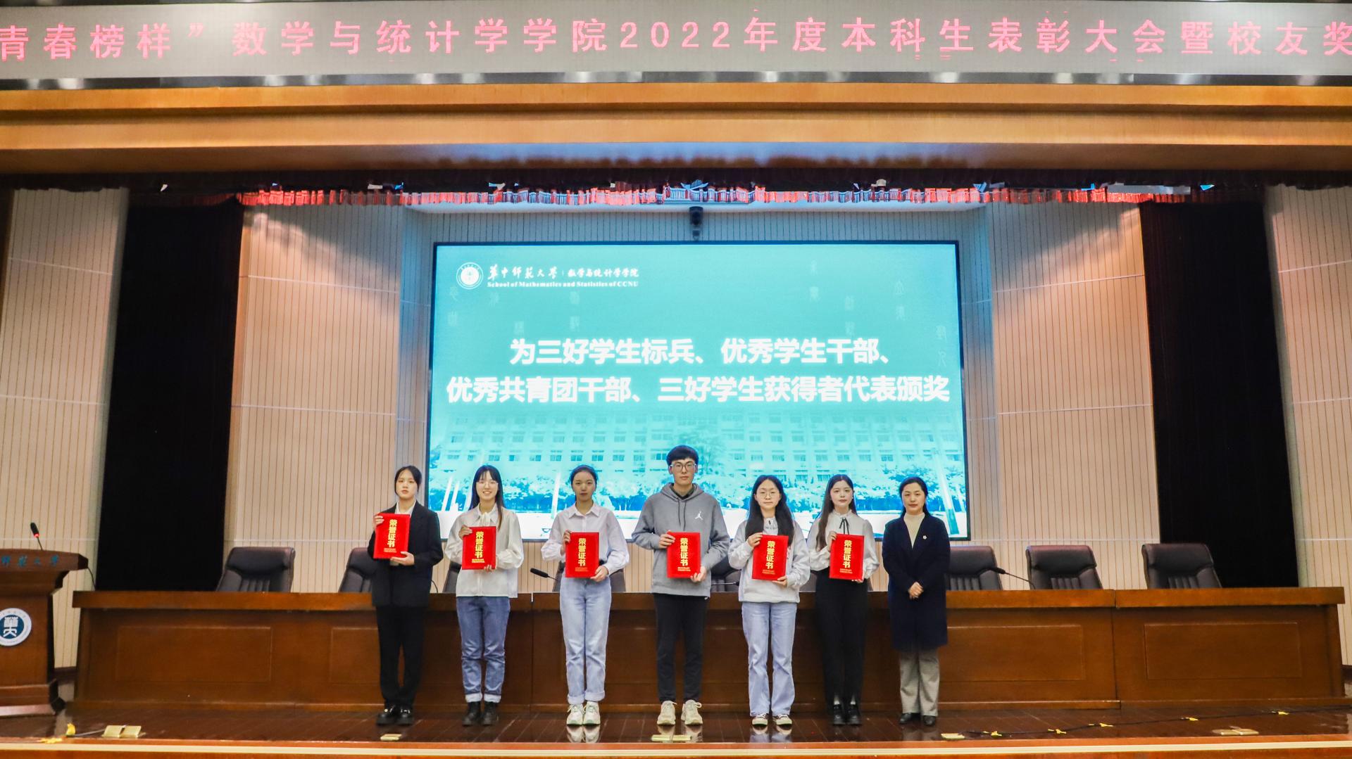 4月23日晚,华中师范大学数学与统计学学院2022年度本科生表彰大会暨校友奖学金颁奖典礼于科学会堂一楼报告厅举行。83级校友华中师范大学广东东莞校友会会长、高金富恒集团有限公司副总经理谢庆棠,湖北省生态工程职业技术学院雷小云,华中师范大学数学与统计学学院办公室主任张在武,84级校友武汉职业技术学院计算机技术与软件工程学院党委书记刘昌喜、华中师范大学附属第一附属中学舒清芳,94级校友华中师范大学第一附属中学李继林、数统学院副教授程婷,校党委学生工作部副部长杨军,校团委书记麻旎,校校友工作办公室副主任易吉林,数统学院党委书记刘成竹、副院长郑高峰,班主任代表蒋代军、范琼、陈双、丁来浩、阴小波出席本次会议。会议由学院党委副书记田俊主持。