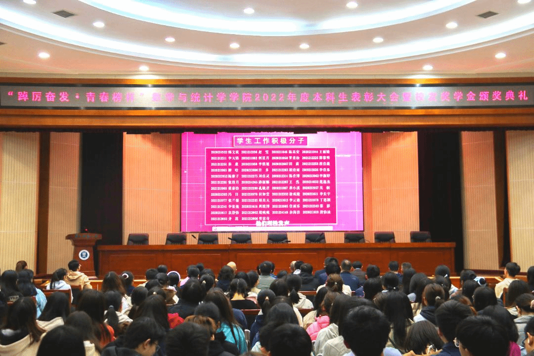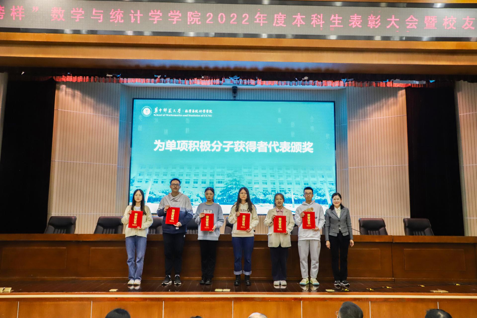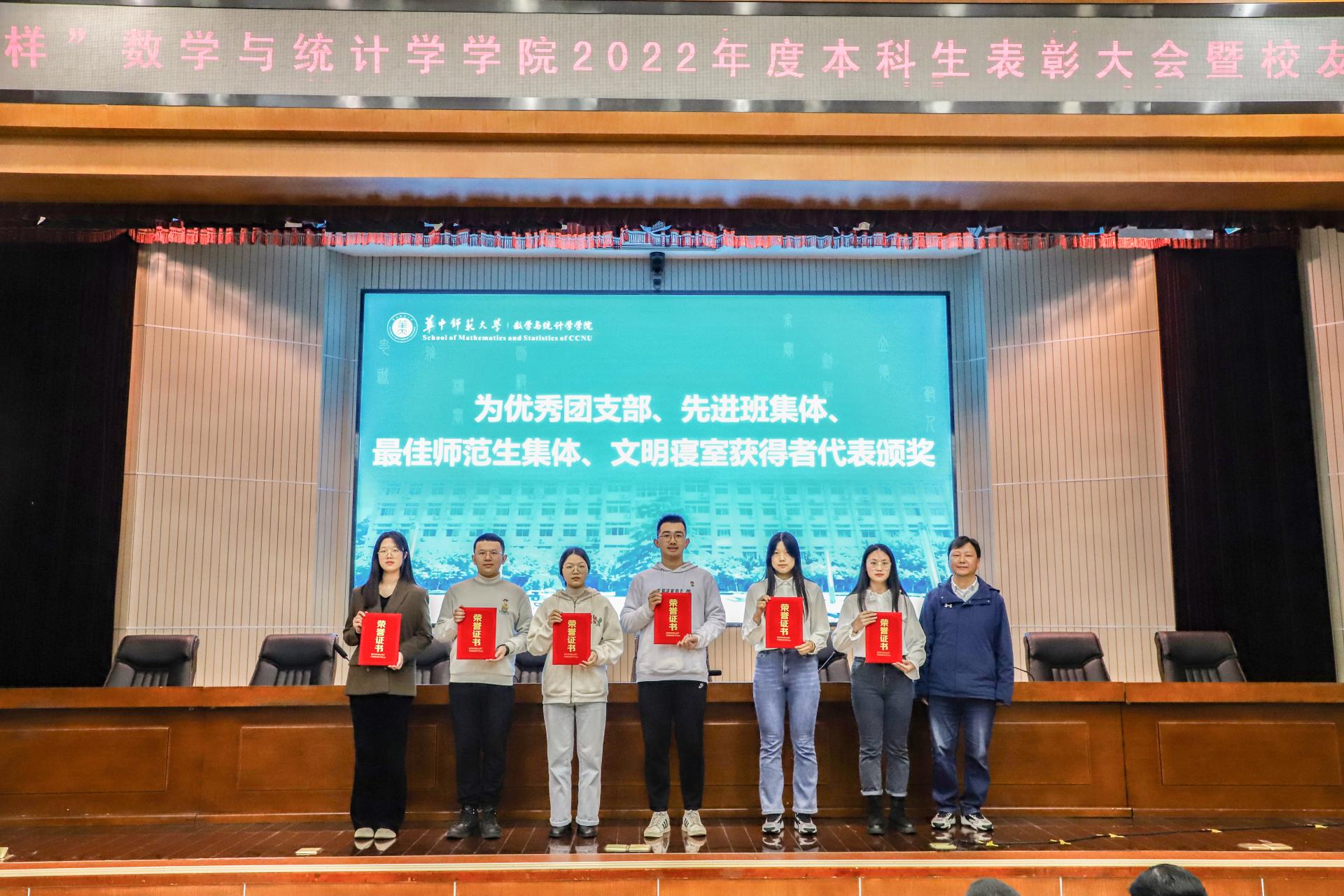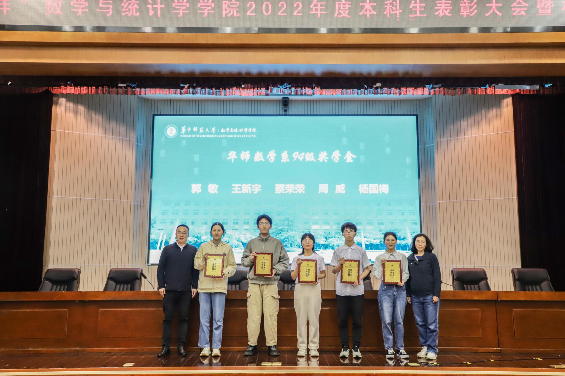 4月23日晚,华中师范大学数学与统计学学院2022年度本科生表彰大会暨校友奖学金颁奖典礼于科学会堂一楼报告厅举行。83级校友华中师范大学广东东莞校友会会长、高金富恒集团有限公司副总经理谢庆棠,湖北省生态工程职业技术学院雷小云,华中师范大学数学与统计学学院办公室主任张在武,84级校友武汉职业技术学院计算机技术与软件工程学院党委书记刘昌喜、华中师范大学附属第一附属中学舒清芳,94级校友华中师范大学第一附属中学李继林、数统学院副教授程婷,校党委学生工作部副部长杨军,校团委书记麻旎,校校友工作办公室副主任易吉林,数统学院党委书记刘成竹、副院长郑高峰,班主任代表蒋代军、范琼、陈双、丁来浩、阴小波出席本次会议。会议由学院党委副书记田俊主持。