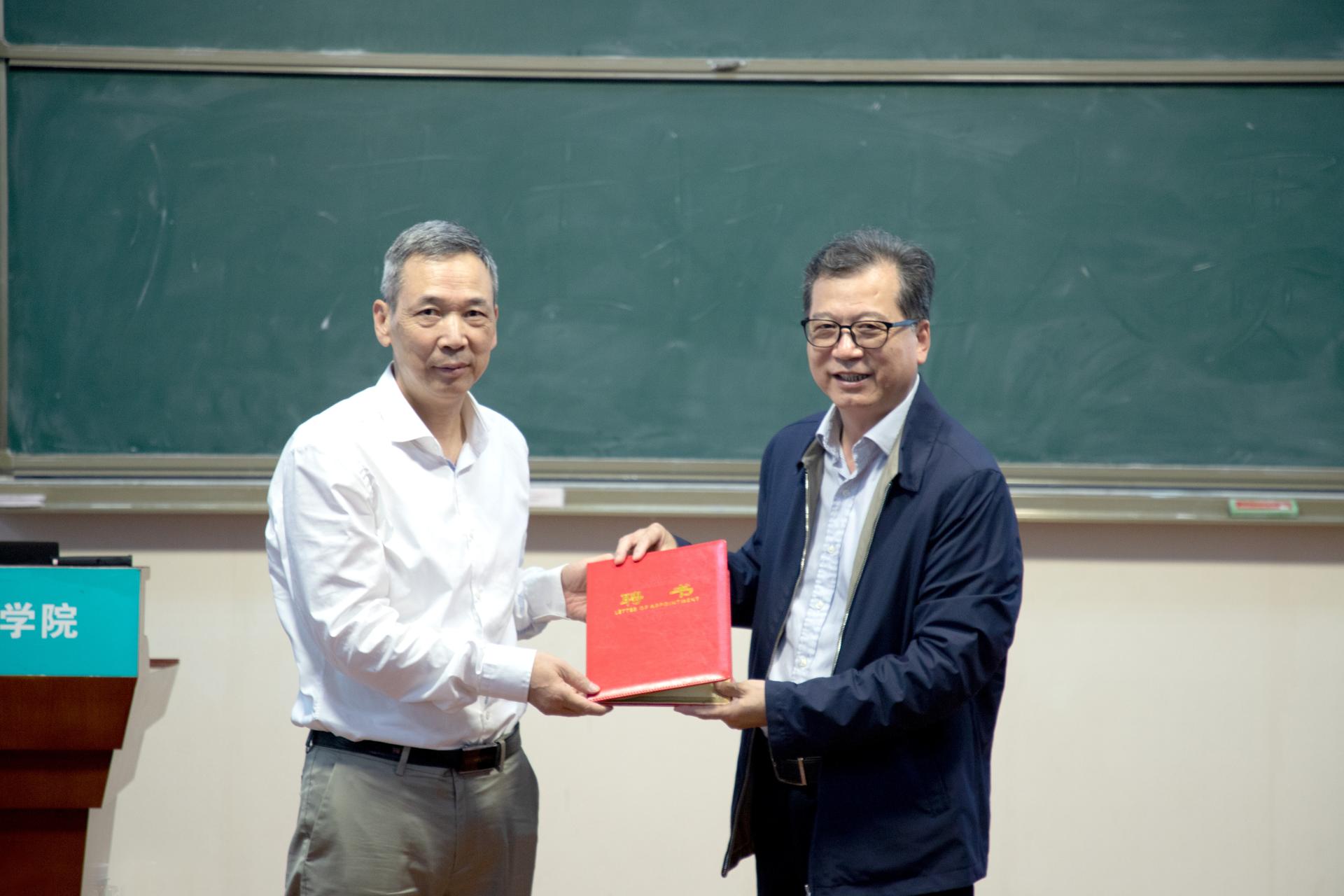 彭南生副校长为席南华院士颁发“华大论坛”主讲人聘书