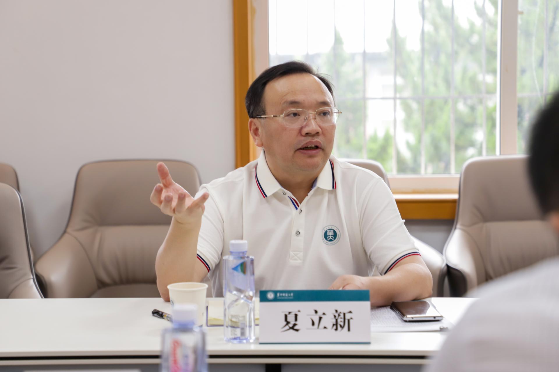 最后,夏立新书记总结讲话,他对学院近年来清晰的发展目标、有效的发展路径和丰硕的发展成果表示赞赏。为更好地发挥数学学科优势,夏书记为学院把脉指导,提出四个方面的希望:一是希望学院对接国家发展战略需求,围绕学校建设教师教育领先的世界一流大学建设目标,在现有良好的人才培养,科学研究基础上,不断提升卓越人才培养能力,促进卓越教师培养。二是希望推进全新学科领域建设,在做好基础研究的同时,引导和鼓励教师做好数学垂直领域研究,不断提升社会服务能力。三是希望做好顶层设计,统筹规划好平台建设,要对标教育部重点实验室建设要求,扎实做好实验室建设,实现平台和学科协同发展。四是希望继续发挥好学院党政领导班子团结奋斗的工作作风,切实履行一岗双责,加强意识形态建设工作,确保学院各项工作安全平稳。
