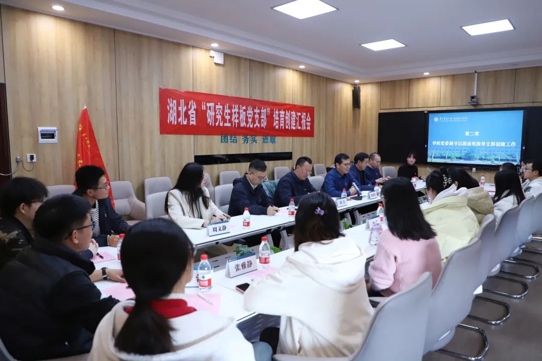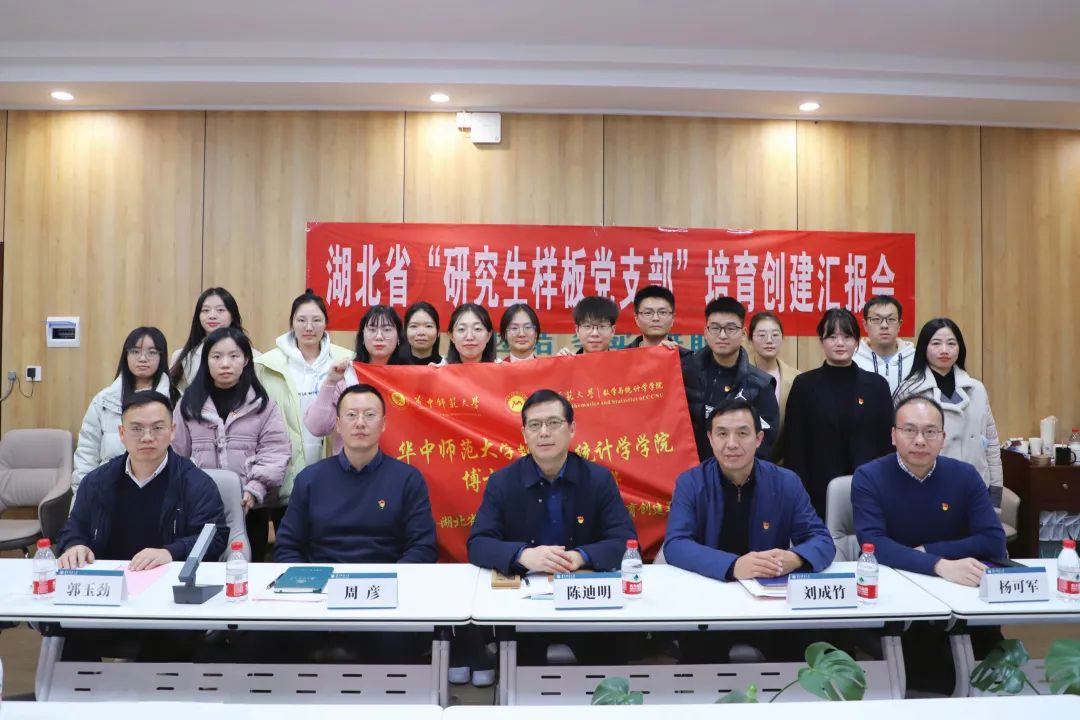 (通讯员 周文静)为深入学习宣传贯彻党的二十大精神,贯彻落实习近平总书记关于加强高校党建工作的重要论述和全省高校党的建设工作会议精神,推动新时代学校基层党组织示范创建和质量创优。12月7日,数学与统计学学院(以下简称“数统学院”)在323会议室举行了湖北省“研究生样板党支部”培育创建汇报会。校党委副书记陈迪明、数统学院党委书记刘成竹、党委副书记周彦、党委副书记杨可军、副院长郭玉劲和博士生第二党支部全体党员列席活动。会议由数统学院党委副书记周彦主持。