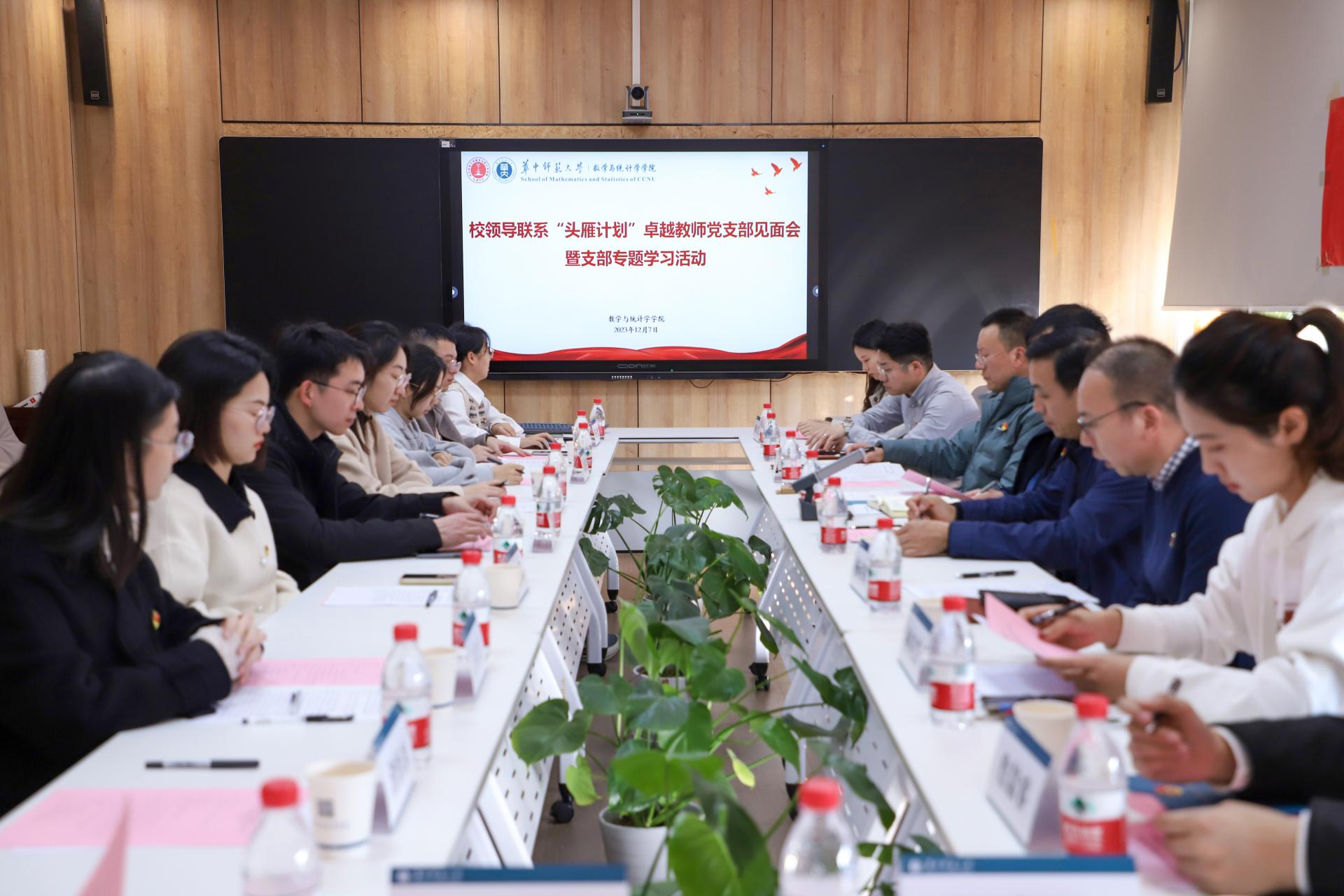 (通讯员 向进)12月7日,校领导联系“头雁计划”卓越教师学生党支部见面会暨支部专题学习活动在六号楼323会议室举行,校党委副书记陈迪明出席活动,数学与统计学学院党委书记刘成竹、党委副书记周彦、“头雁计划”卓越教师学生党支部全体党员参加见面会暨专题学习活动。数统学院全体专兼职辅导员列席本次活动。活动由数统学院党委副书记杨可军主持。
