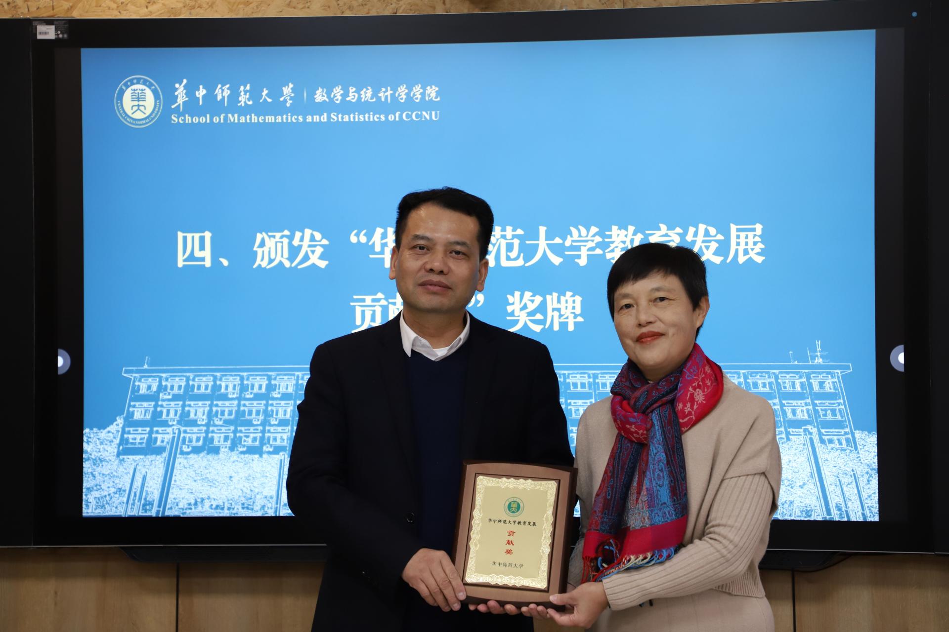 颁发“华中师范大学教育发展贡献奖”奖牌