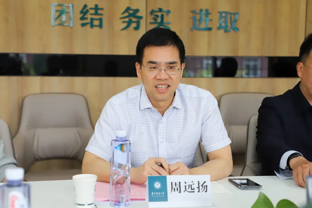 周远扬对西南大学数学与统计学院一行的到访表示欢迎,并从学科专业建设、科研研究情况及教育人才培养等方面介绍学院概况。他表示今年恰逢我院学科创建百年的重要节点,希望能够以此座谈会为契机,相互交流借鉴,共同推动数学学科的发展。