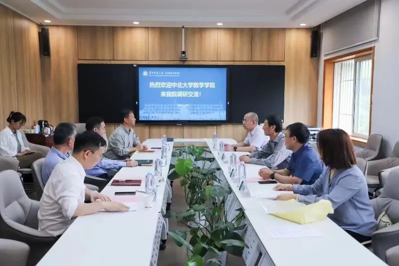 刘成竹对中北大学数学学院一行的到访表示欢迎,围绕专业设置、平台建设、人才培养等方面进行简要介绍。薛亚奎介绍了中北大学发展历程及数学学院学科建设情况,并表示,希望借此机会学习我院在学科建设、基层党建工作等方面的经验做法,促进双方后续交流与合作。