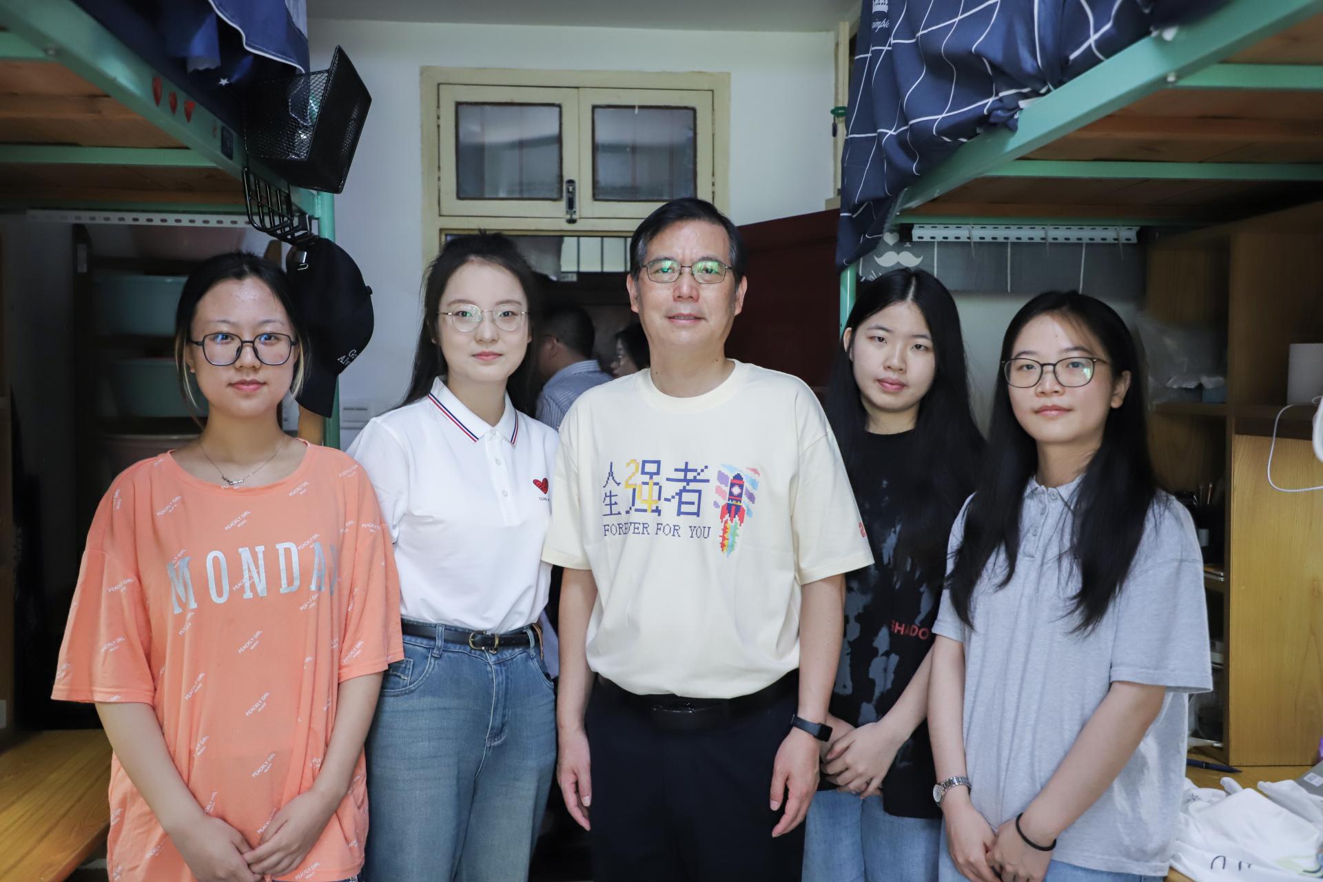 在东区1栋427和428寝室,陈迪明详细询问了毕业生们的就业情况、未来规划以及离校前的生活安排。对找到心仪工作的同学,陈迪明给予了热烈的祝贺,并鼓励她们继续努力,不断提高自己的专业技能;对升学深造的同学,陈迪明鼓励她们继续保持学习的热情和探索的精神,在更高层次追求学术上的突破和进步。陈迪明对毕业生的未来发展表达了美好祝愿,希望大家珍惜在校的最后时光,与同学们多交流、多沟通,共同度过这段难忘的时光,毕业后也要“?;啬感?纯础?。