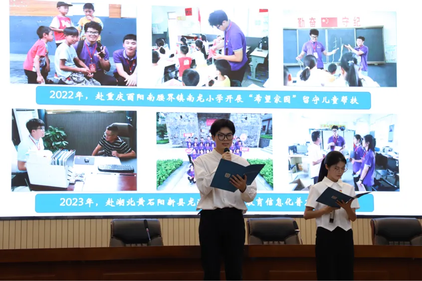 “立身百行、以学为基,扎实的学识仍然是成长的基础。”在校生代表任欣梦、李天铭结合志愿服务、学习生活、学生工作等方面分享了自己在数统学院的经历,激励大家寻求热爱,勤学笃行,筑牢成长之基,探索无限可能。