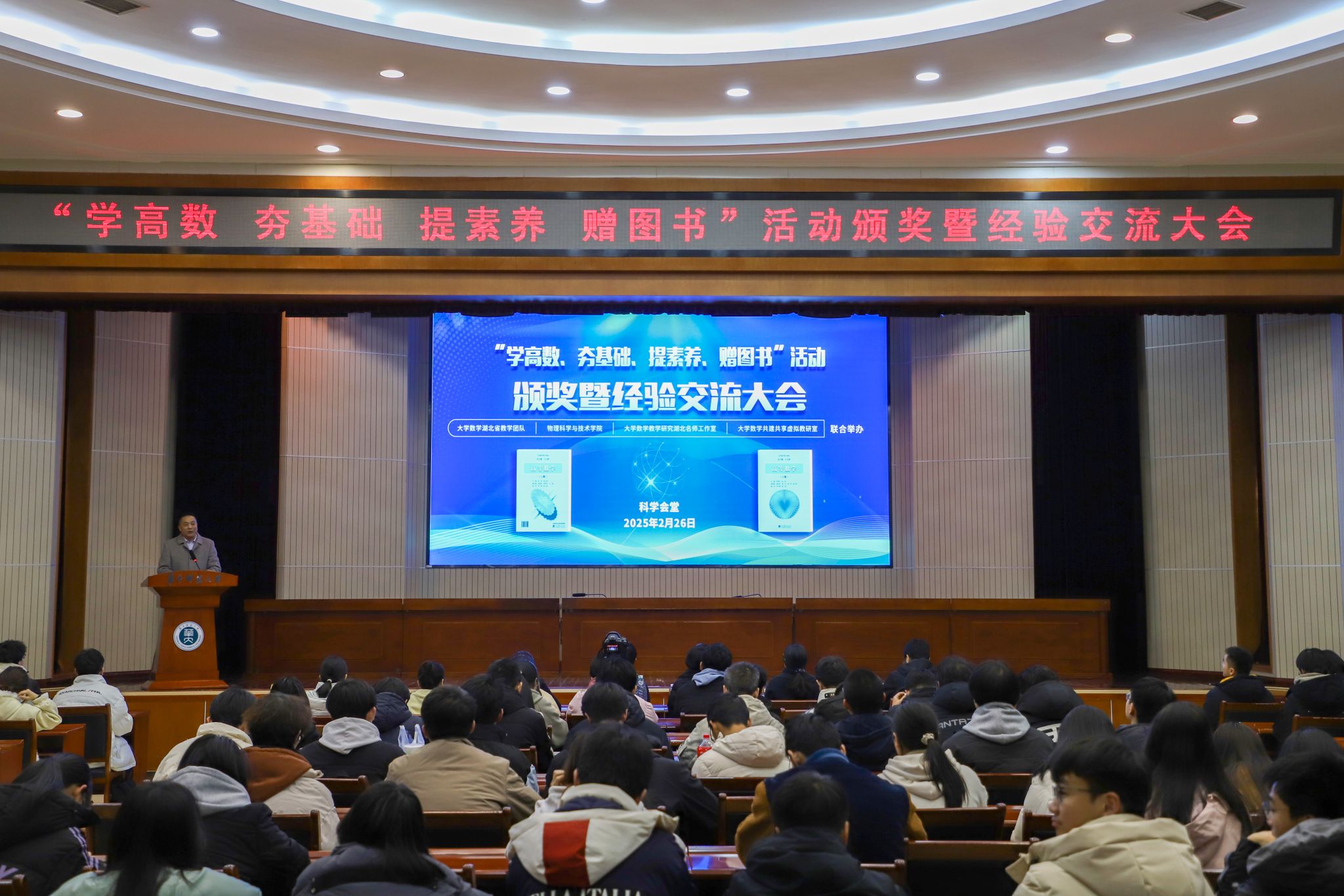 (通讯员 杨宁宁 王海汀)2月26日下午,由华中师范大学大学数学湖北省教学团队(以下简称“团队”)、华中师范大学物理科学与技术学院(以下简称“物理学院”)、大学数学教学研究湖北名师工作室、大学数学共建共享虚拟教研室联合举办的“学高数 夯基础 提素养 赠图书”活动颁奖暨经验交流大会于科学会堂一楼报告厅顺利举行。物理学院副院长施梳苏、党委副书记马英,团队教师方文波、程婷、王燕、赵越,物理学院200余名2024级本科生参加大会。本次大会由方文波主持。