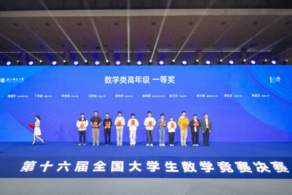 (通讯员 杨宁宁)4月11日至13日,第十六届全国大学生数学竞赛决赛在浙江师范大学成功举行。我院2022级本科生姚硕宇、2022级本科生吴杰分别获得数学类高年级组一、二等奖。