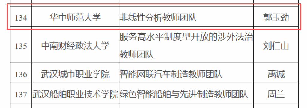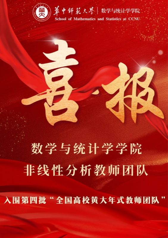 近日,教育部公布了第四批“全国高校黄大年式教师团队”创建示范活动入围名单,我院非线性分析教师团队成功上榜!