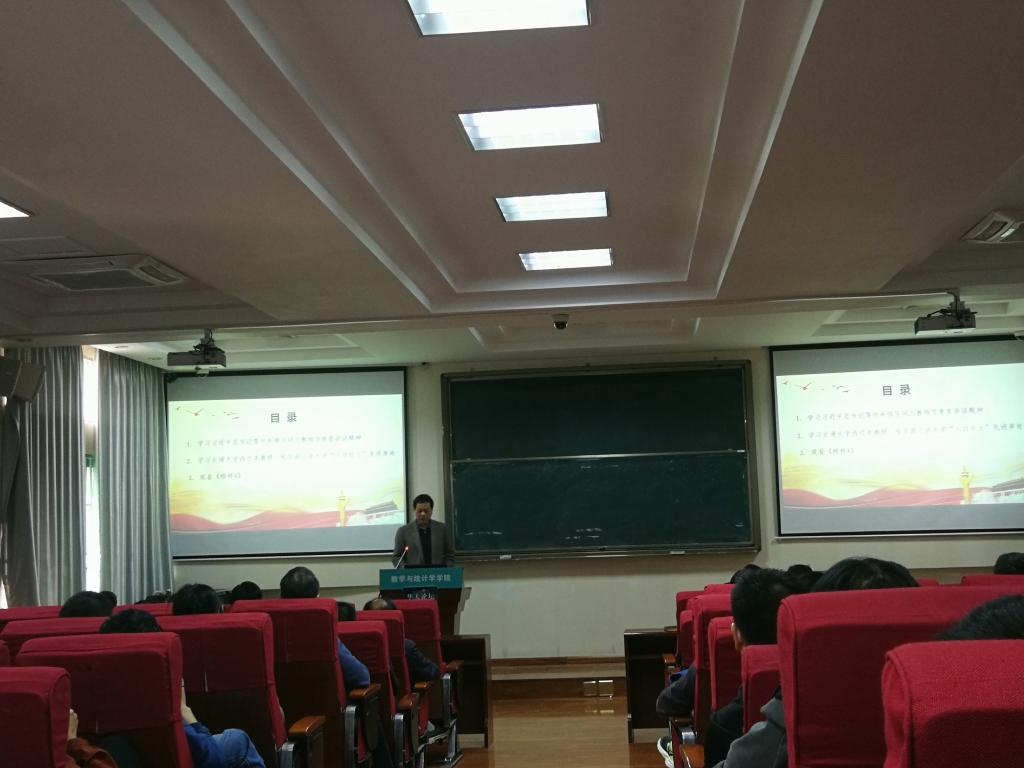 11月1日下午,数学与统计学学院全体教职工在六号楼6401教室集中,就习近平总书记等中央领导同志教师节重要讲话精神与交通大学西迁老教授、哈尔滨工业大学“八百壮士”先进事迹开展了集中深入学习,并观看了《榜样4》。会议由分党委书记王中主持。